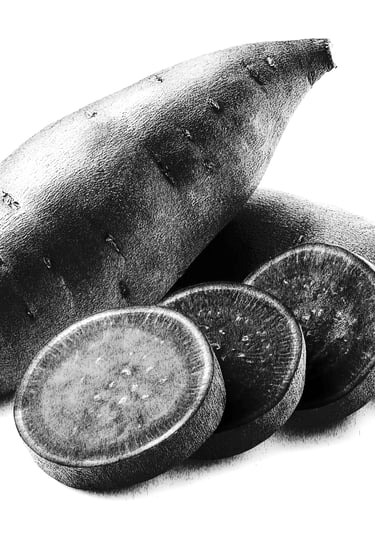 Cena: Hummus de boniato morado con crujiente de castaña.